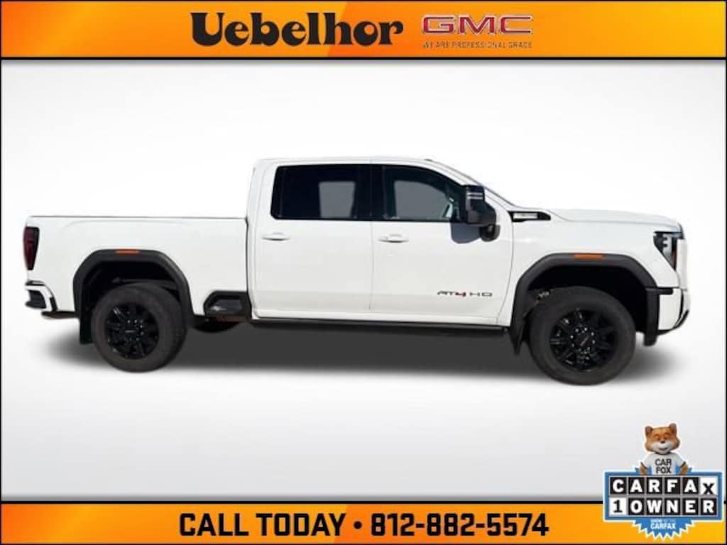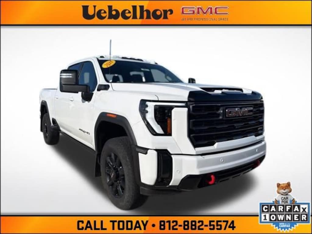 VIN: 1GT49PE73RF192157 - Tackle any job or adventure with confidence in this 2024 GMC Sierra 2500HD AT4, now available at Uebelhor GMC Cadillac in Vincennes, Indiana. Powered by a robust V8 engine paired with a smooth automatic transmission and advanced 4WD, this heavy-duty AT4 delivers impressive towing and payload capabilities while maintaining strong fuel efficiency for its class. The rugged exterior is complemented by a refined interior featuring premium seating, intuitive infotainment with Apple CarPlay and Android Auto, and advanced safety technologies for peace of mind on every drive. With low mileage and a competitive price range, this 2024 GMC Sierra 2500HD AT4 stands out among cars for sale in Vincennes IN at a trusted Indiana dealership. Shop Uebelhor & Sons, proudly known as Where Customers Send Their Friends.Schedule your test drive today at Uebelhor GMC Cadillac in Vincennes where customers send their friends!Summit White 2024 GMC Sierra 2500HD AT4 10-Speed Automatic 4WD 6.6L V8