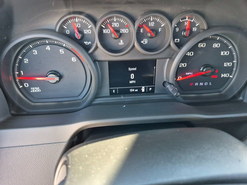 This Regular Cab SRW RWD truck includes important fleet features like Upfitter Switch Kit (5), heavy-duty 720 CCA battery, HD rear vision camera, Apple CarPlay/Android Auto, navigation, and durable vinyl seating.