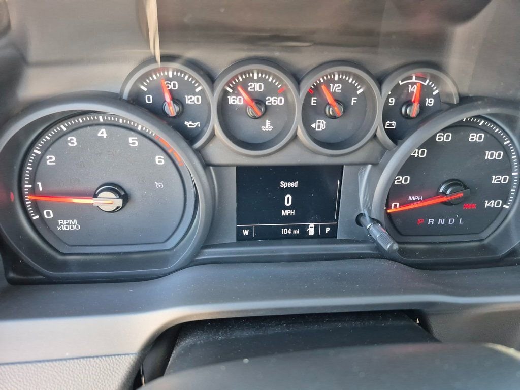 This Regular Cab SRW RWD truck includes important fleet features like Upfitter Switch Kit (5), heavy-duty 720 CCA battery, HD rear vision camera, Apple CarPlay/Android Auto, navigation, and durable vinyl seating.