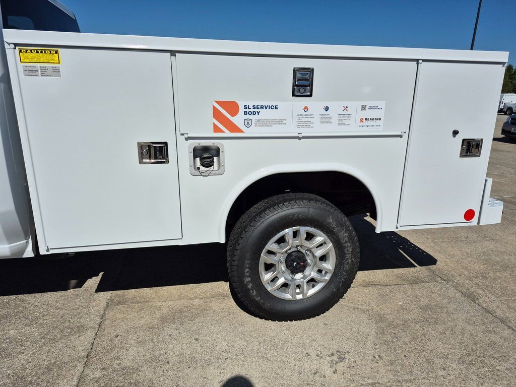 Service Body: Reading SL Steel Service Body 8' (Model SLU98-SW), steel construction, LED exterior lighting, slam-action tailgate, treadplate floor, 1046 lb body weight