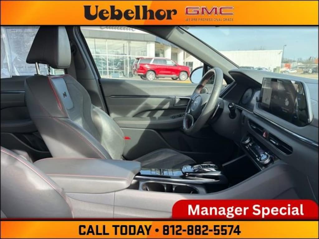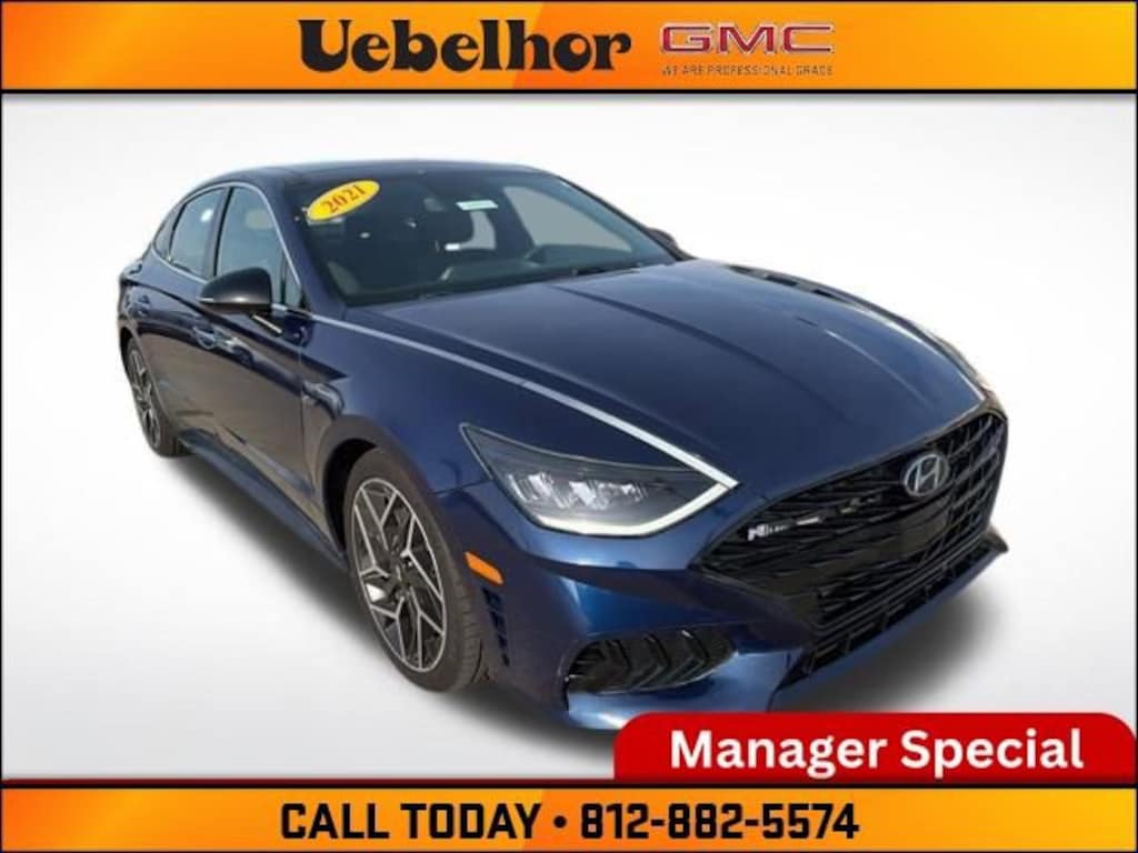 Turn every drive into an experience with this 2021 Hyundai Sonata N Line, 5NPEK4JC3MH127091, now available at Uebelhor GMC Cadillac in Vincennes, Indiana. Designed for drivers who want performance and style, the Sonata N Line features a powerful turbocharged engine paired with a sporty automatic transmission, delivering impressive acceleration while still offering excellent fuel efficiency. The bold N Line styling is matched by a refined interior with sport-inspired seating, advanced infotainment with Apple CarPlay and Android Auto, and a digital driver display. A full suite of Hyundai SmartSense safety features adds confidence to every mile. With low mileage and a competitive price range, this 2021 Hyundai Sonata N Line stands out among cars for sale in Vincennes IN at a trusted Indiana dealership. Shop Uebelhor & Sons, proudly known as Where Customers Send Their Friends.Schedule your test drive today at Uebelhor GMC Cadillac in Vincennes where customers send their friends!Stormy Sea 2021 Hyundai Sonata N Line 8-Speed Automatic FWD I4 Black Leather 23/33 City/Highway MPGOdometer is 5164 miles below market average!