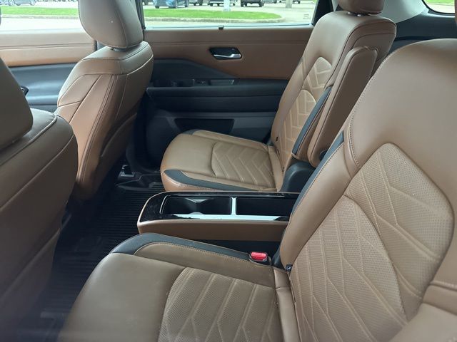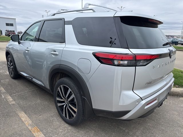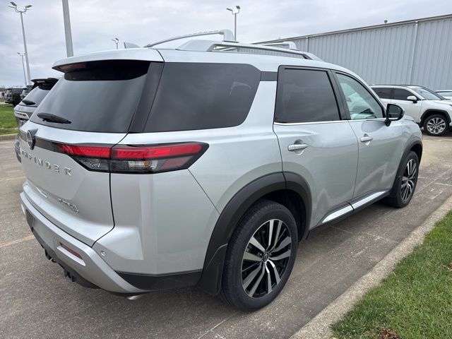 Step inside and be captivated by the premium features that elevate the Pathfinder Platinum. Enjoy the convenience of the NissanConnect with Navigation and Services, the exceptional clarity of the Bose Premium Audio System, and the comfort of the Climate Controlled Front Bucket Seats and Heated Front and Rear Seats. The Heads-Up Display and Panoramic Moonroof further enhance the driving experience, while the Power Liftgate and Exterior Parking Camera Rear provide added utility and peace of mind.